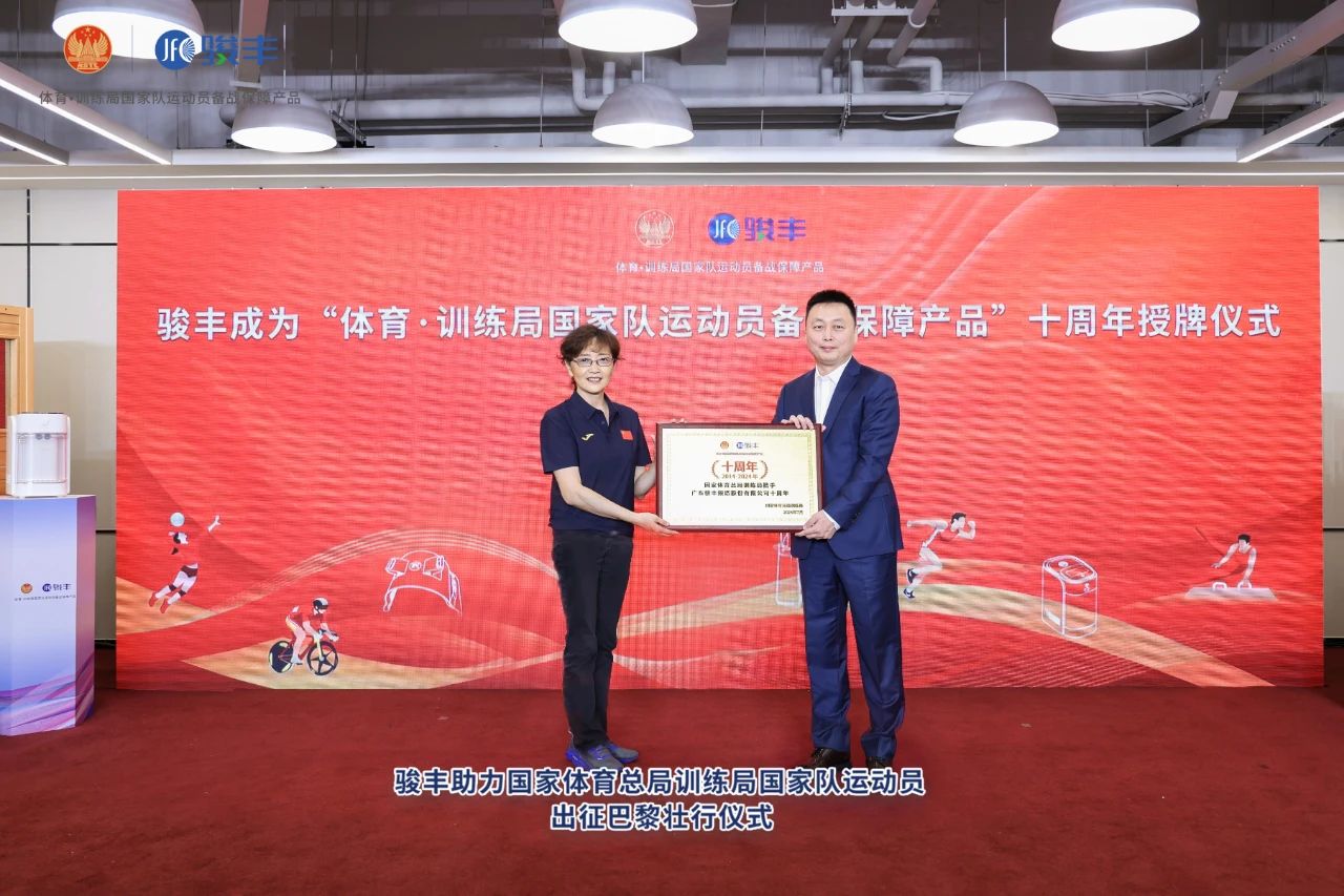 回顾过去十年,骏丰公司始终致力于用科技推动体育强国梦的实现,并持续以实际行动支持中国体育事业发展。在骏丰公司的备战保障下,国家队运动员先后征战里约、东京、巴黎三届体育盛会,并斩获了令世界瞩目的辉煌成绩。尤其今年,中国体育代表团以40金27银24铜的奖牌数,创下了境外参赛最佳成绩。